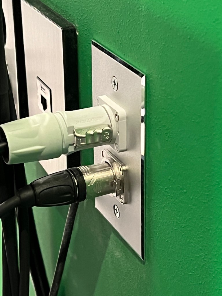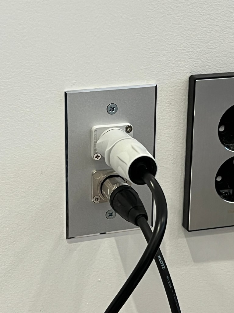 그래서 전원 콘센트는 일반 콘센트로 하지 않고 벽면 패널에 벽부형 PowerCon으로 하고 벽부형 XLR 커넥터도 같이 만들었습니다.