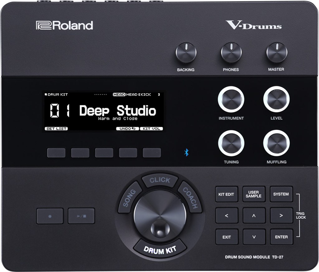 Roland사의 TD-27KV는 리얼한 드럼 터치 뿐만 아니라 사운드 모듈 내장 드럼 사운드는 수 많은 실제 드럼 사운드를 샘플링하여 드럼의 재질, 깊이, 튜닝 등 다양한 파라메터를 실제와 똑같이 구현하여 매우 리얼한 드럼을 경험하게 해 드러머가 가장 거부감이 없이 즐겁게 연주할 수 있는 전자드럼입니다.