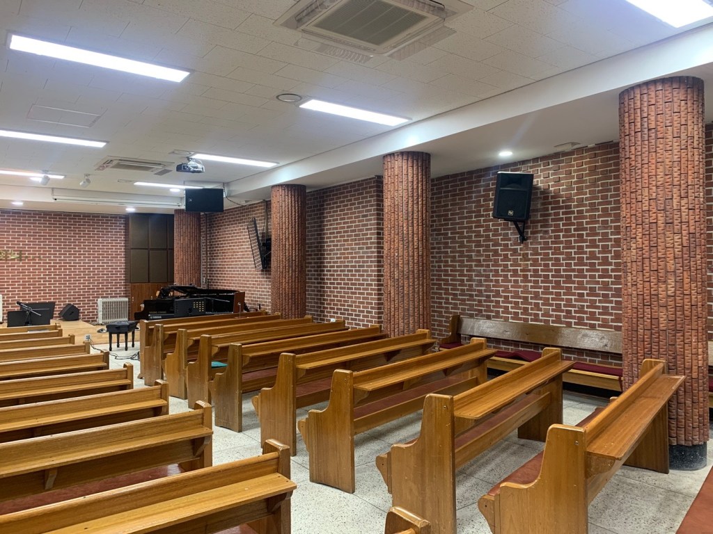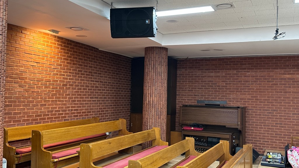 반사가 많이 되는 벽돌조 내부로 인해 하울링도 쉽게 생기는 조건이라 흡음력과 명료도가 좋은 마이크와 하울링 제거에 신경을 많이 썼습니다.