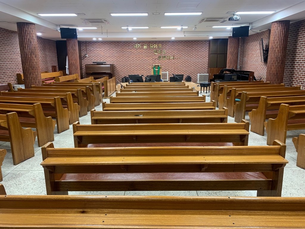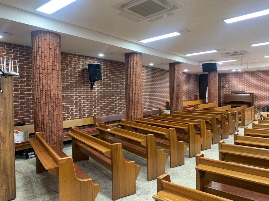 주거용 건물을 리모델링을 해 사용하는 교회여서 예배당은 지하에 있었습니다.