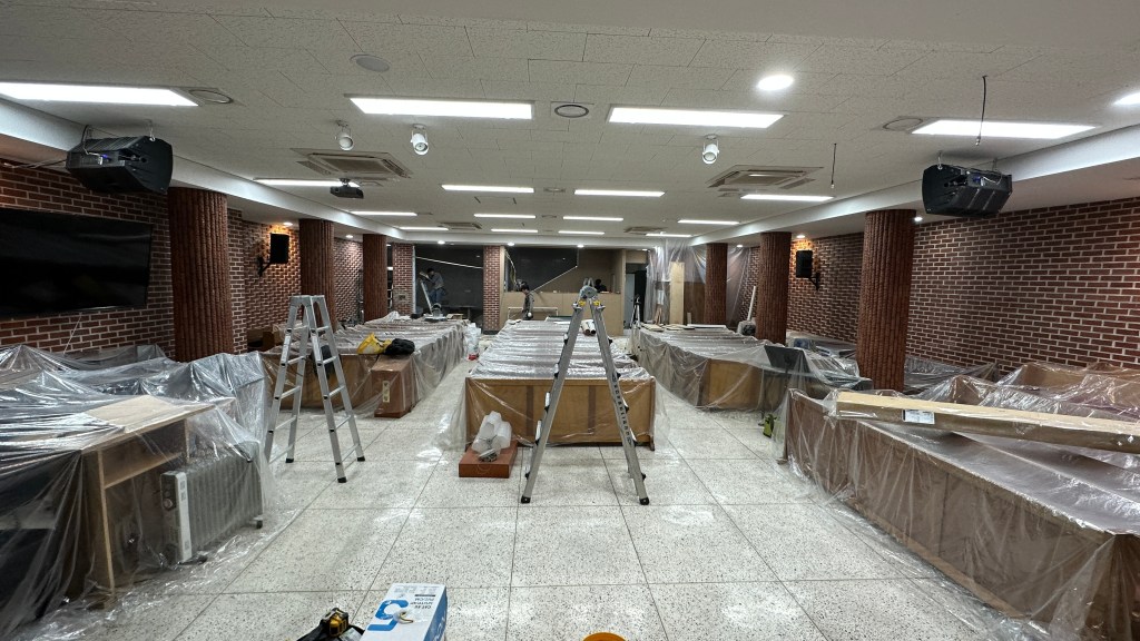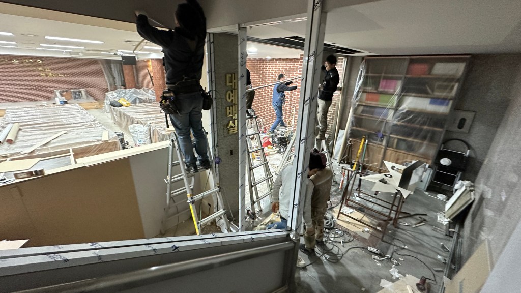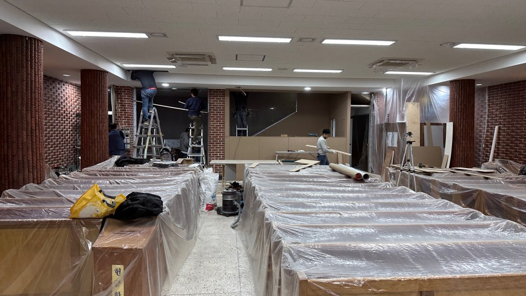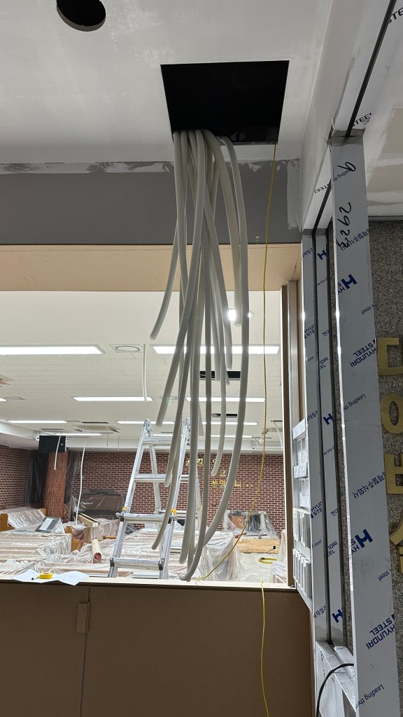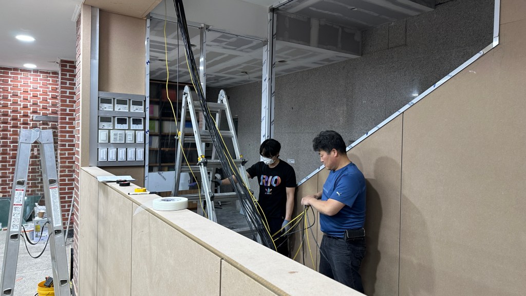 한 번에 쭈욱 할 수 없고, 건축과 리모델링의 진행에 따라 벽체, 천정, 강단 등의 진행 일정이 다 다르기에 각각 들어가 작업하다보면 시공일수가 많이 늘어납니다.