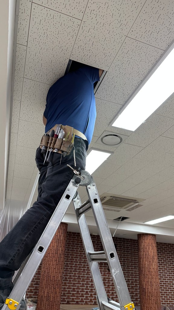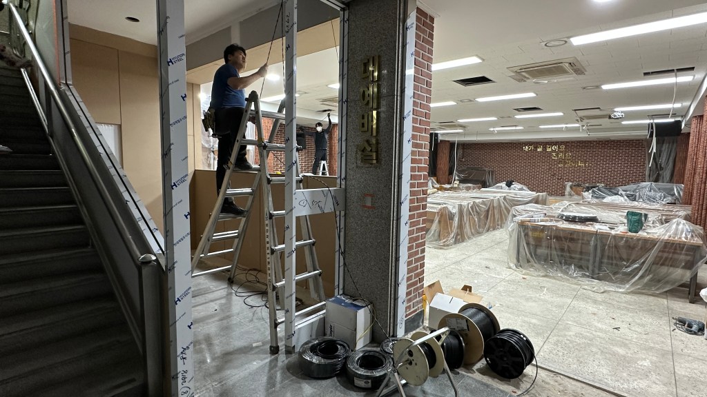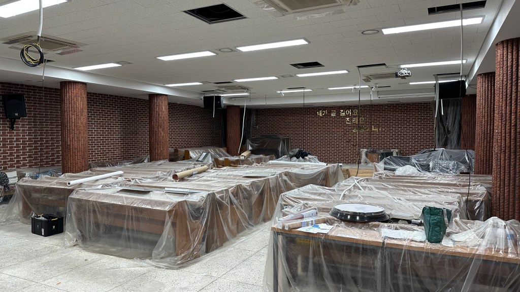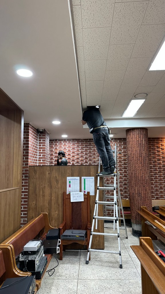 예배당의 후면 확장과 방송실 위치 변경의 인테리어 공사가 같이되어 인테리어 일정에 따라 배관 배선 공사 일정을 잡았습니다.