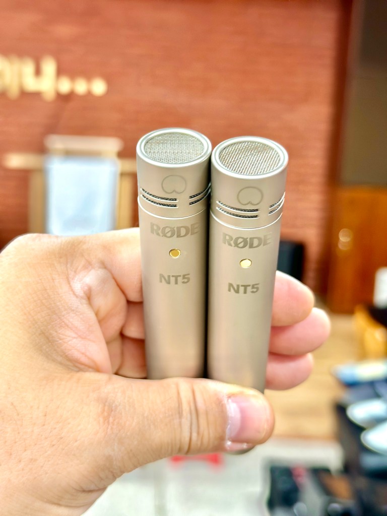 마이크 제조사에서 동일한 두 개의 마이크를 실제 측정하여 같은 성능을 가지는 것을 보장하는 Matched Pair 세트를 선택해 설치했습니다. (RODE NT5 Stereo Matched Pair)