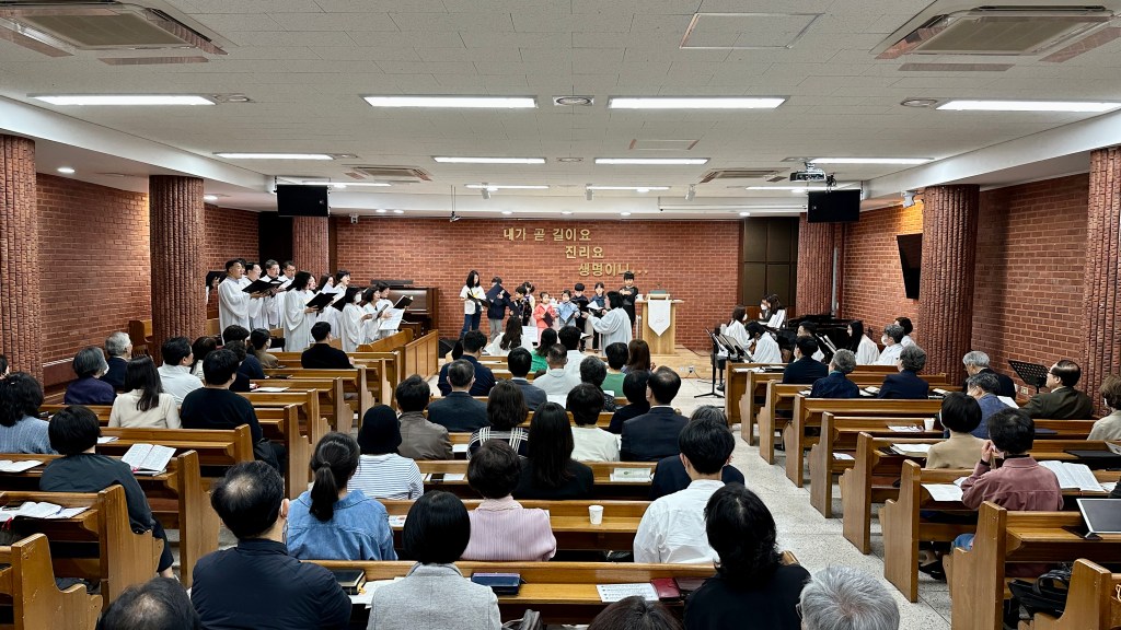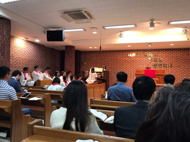 그루터기 교회는 찬양 밴드는 없고 성가대의 비중이 있는 교회입니다.