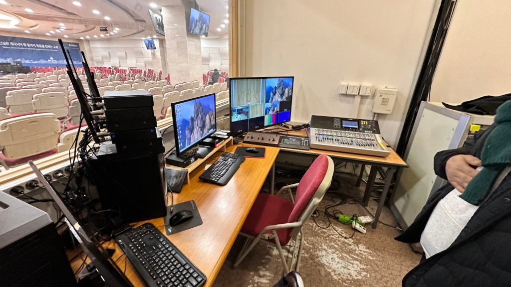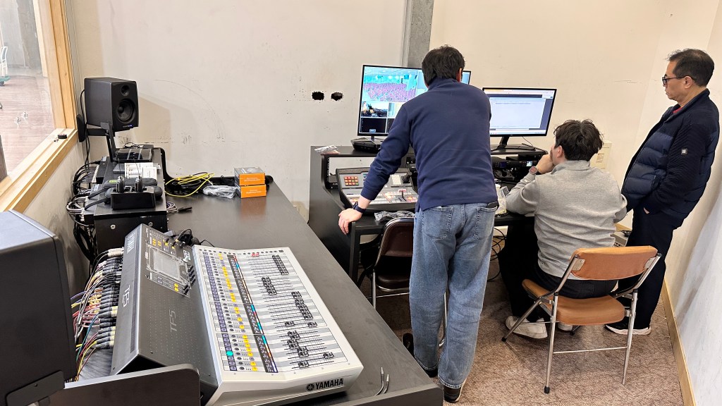 작업 완료 후 비젼 채플 내 영상 방송 테스트 및 유튜브 송출 테스트까지 방송 팀원 분들과 같이 하였습니다.