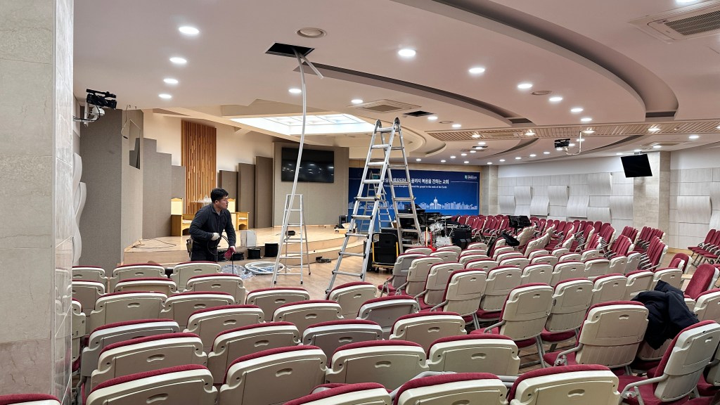 기존 찬양팀이 좌측에 있어서 강사분들의 동선에 겹치는 문제가 있었습니다. 그래서 찬양팀을 우측으로 배치를 하면서도 다양한 행사를 위해 좌측에도 위치할 수 있도록 디지털 음향 시스템 네트워크를 설비하기를 원했습니다.