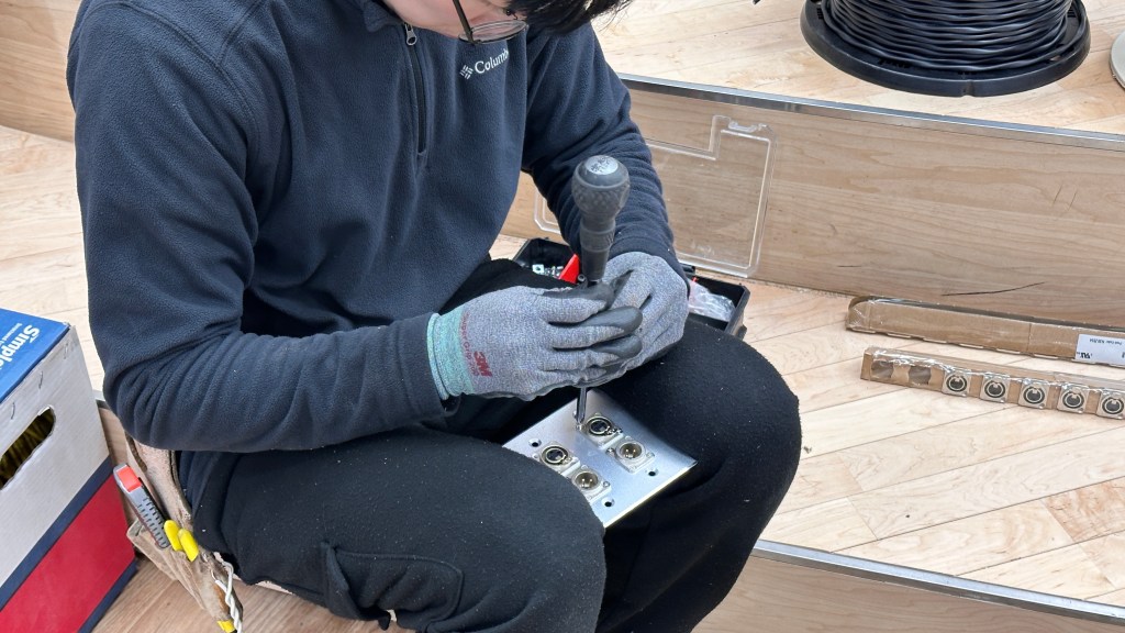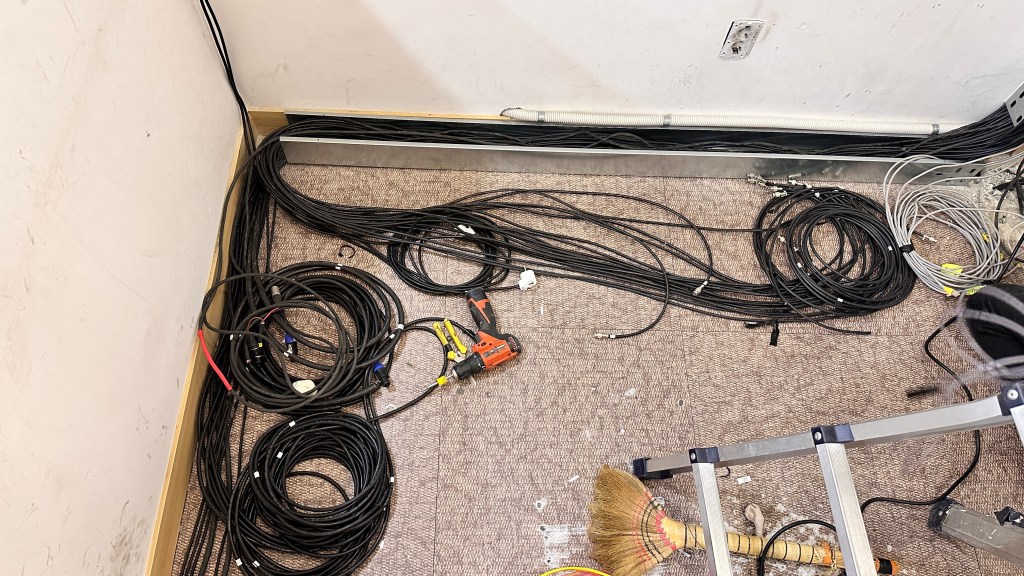 음향용 SFTP CAT6 케이블을 혹시 모를 사고를 대비해 2중으로 양쪽에 다 설치했습니다.(총 4개 네트워크 라인 구성으로 시공했습니다.)