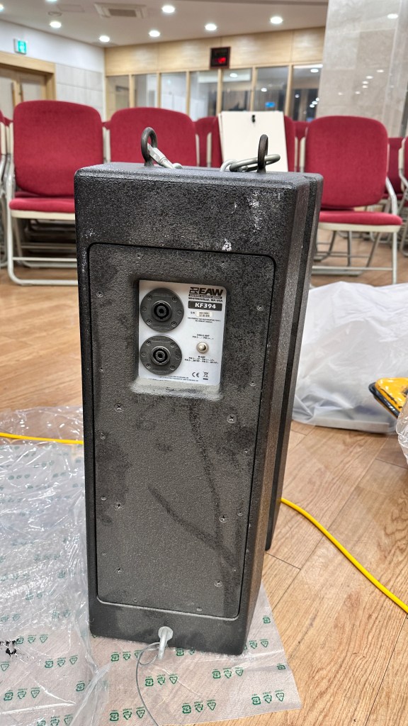 그러나 EAW사의 스피커는 오래되고 왼쪽 스피커의 트위터가 고장이나 수리를 위해 떼어내고, 교회가 보유한 YAMAHA CHR15 스피커를 달았습니다.