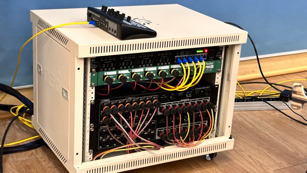 찬양팀 악기 연주자들이 양쪽 모두 선택해 세팅할 수 있기 위해서는 기존의 멀티 케이블은 사용하기 어려워 Digital Stage Box로 입출력을 하고 연결은 CAT6 LAN 케이블로 연결해야 합니다.