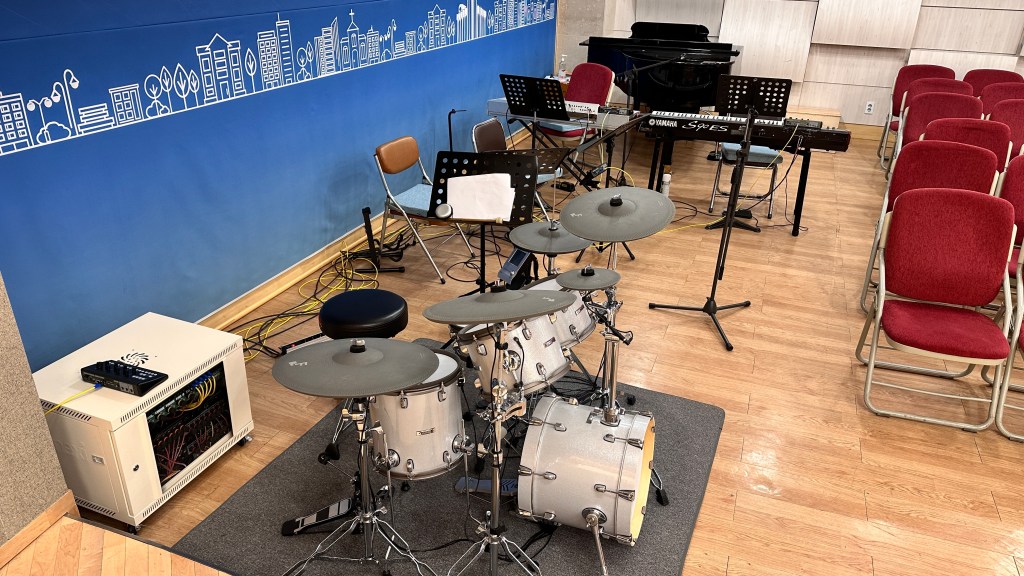 디지털 믹서는 TF3에서 TF5로 바꾼 것이라 사용법을 따로 교육할 필요는 없었지만, 입출력의 배치와 새로 설치한 디지털 음향 네트워크에 대한 설명을 해 드렸습니다.
