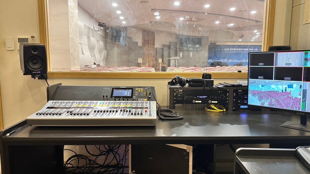 동급의 Allen & Heath사의 디지털 믹서는 이런 부분에서 이렇게 복잡하지 않고 연결하고 간단하게 세팅하면 되기에 담당 집사님께 이 회사 모델은 고려하시지 않으셨나고 여쭤보니, 당연히 당회에 의견을 냈는데, 약간 더 바싸서 당회에서 승인되지 못했다고 했습니다.