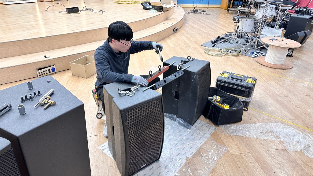 메인 스피커, 강단 추가 설치 컬럼 어레이 스피커, 모니터 스피커 등 6계통의 스피커 라인 교체 작업도 진행했습니다.