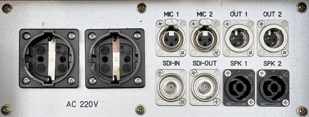 그리고 설교단 아래 마이크 박스에는 액티브 모니터 스피커, 패시브 모니터 스피커 모두 사용할 수 있도록 배관 배선 및 단자까지 잘 준비해 드렸고, 노트북/ENG 카메라용 전기, 노트북 음향 연결용 오디오 단자, 액티브 모니터 스피커용 단자, 영상 입출력 단자까지 완비해 드렸습니다.