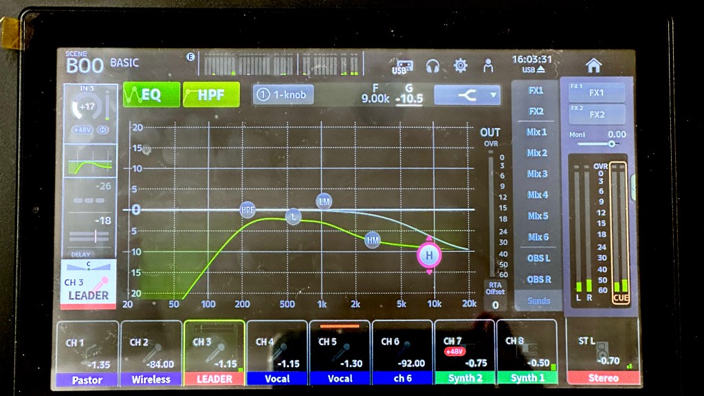 교회에서 기존에는 아나로그 믹서를 사용하고 있었고, 오래되어 고장나 나오지 않는 채널과 잡음이 많이 생겨 디지털 믹서로 바꾸기를 원하셨습니다.
